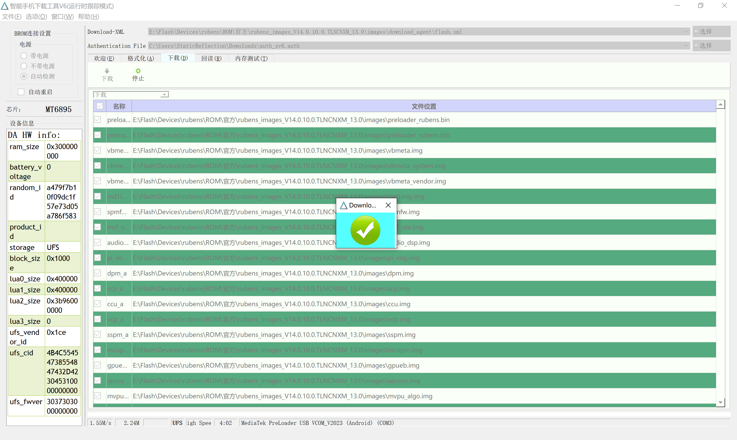 刷写完成后,需要同时按住音量加减和电源键按键才能退出preloader mode