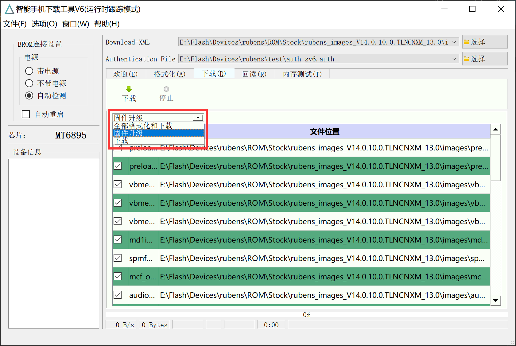 /images/download_agent目录下的flash.xml点击Authentication File右边的choose后,选择auth_sv6.auth文件